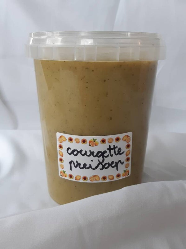 Ingredienten: courgette, prei, uien, knoflook, kruiden,water en bouillon.