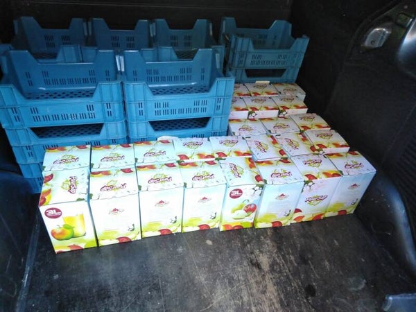 Wij hebben onze appels en peren laten persen door een sap mobiel. Onbespoten fruit tot sap verwerkt.