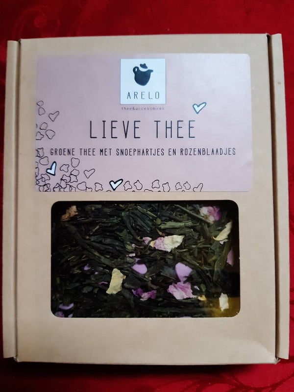 Een heerlijke thee van milde groen thee, rozen en natuurlijk gekleurde suikerhartjes. Leuk om cadeau te doen en om te ontvangen!
